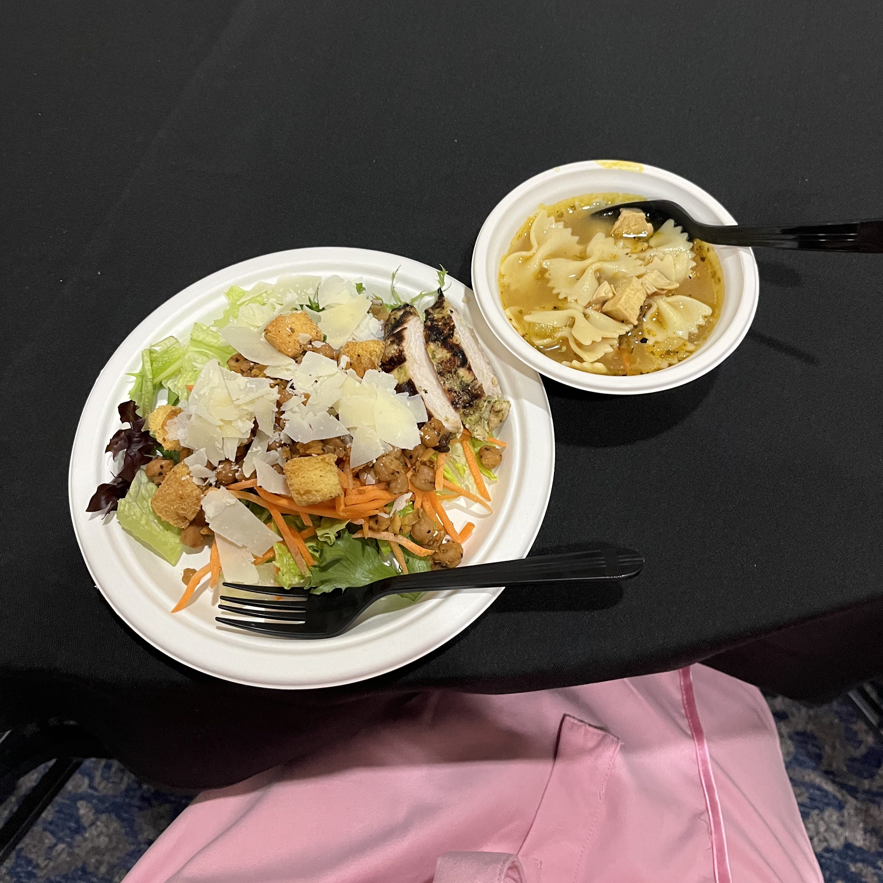 Hello blog! Today I tabled at the Athens Clarke County Total Health Fair at The Classic Center. This fair is set up for ACC government/public employees to be able to take control of and learn about their health and the services available in Athens Clarke County. I tabled with Aly and Blane who work in marketing. I just observed Aly for the first bit to see how she was interacting with people and what information she was giving them. After a while I felt comfortable talking to people by myself and sharing about what we do at UCBC and UCBC Cares. The main thing we were highlighting was our comprehensive breast hall program which starts with screening and prevention and will take you through the whole process of diagnostics and treatment if necessary. We were reminding women to schedule their mammograms and letting them know that we are currently offering extended hours to accommodate people who can’t get off work who still need to get their screenings. We passed out educational cards for how to perform a self breast exam that had a pop out for each month after you completed it to make sure you check yourself consistently. We still made sure to talk to men about mammograms so they could remind the women in their lives to get screened. We also shared information about our colorectal, gastrointestinal, and primary care services. The event was a little slow so I ended up walking around to other tables to see if any of these health related organizations had openings where I could work. No one had jobs off the top of their head that they could give me, but I took many brochures and business cards with websites and phone numbers to keep my eye on. They provided lunch for the vendors which consisted of some absolutely delightful chicken noodle soup, an unpleasant salad, and a fine little chocolate cake. Today was a long day, I was at the event from 8am to 3pm so I took a well deserved nap after.