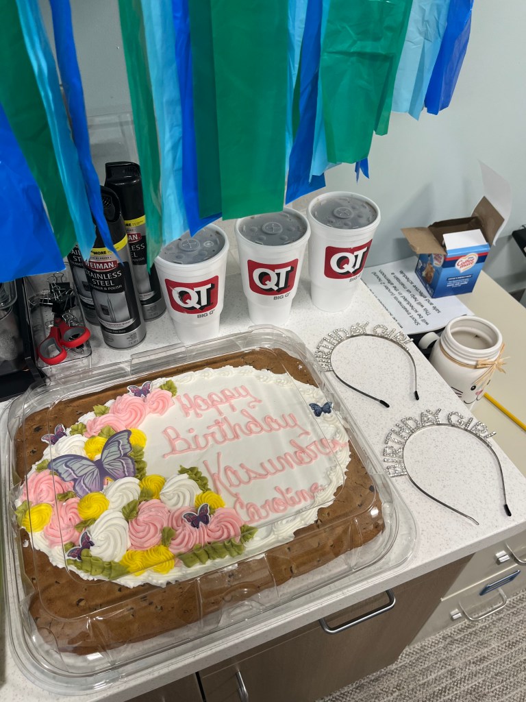 Today I came in a little late because I was tasked with picking up a birthday cookie cake for our work based learning student and our receptionist. We celebrated their birthdays and it was super sweet! We’re having another Look Good Feel Better event in a week and a half so I went over the slides Yessica and I worked on a while ago to make sure they were good. I also worked on the invitation for the Jennifer Allen Spirit of Service Awards that we’ll be giving out next Friday to volunteers. Once I got it approved by Amy I sent it to Molly so she could send it to the staff and volunteers. I went back to Breast to get more drinks and our drink dispensers for Saturday. While I was there I grabbed a sample LGFB bag to take and show off at breast cancer support group. I came back to the office at 5:30 to speak at support group and invite them to LGFB. One lady told me she signed up. I love being able to be at support group because it’s a beautiful community. Tonight they had an activity of painting led by an instructor. I was allowed to stay and paint since they had extra settings. It was super fun and I was able to take pictures to use for content once the group leader gets approval from everyone.