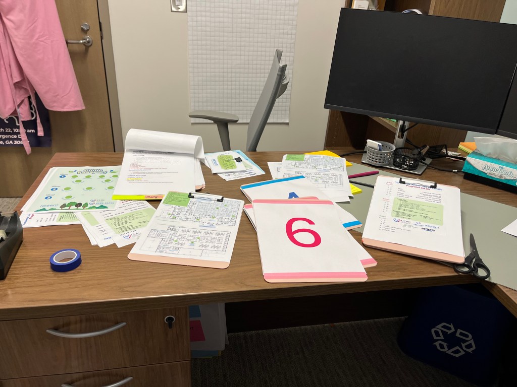 Today I came in around 10:30am to print some samples for our last Growing Together meeting. We met with the whole team at 11 to discuss final plans, printed materials, supplies, and getting ready. Molly and I took the role of making all the volunteer clip boards. We had lunch after the meeting and went to go print. Each clipboard got a schedule, map of the building, group assignments, and a passport. The back of each clipboard had the number of that group so the volunteers would be able to easily attract the families assigned to their group. Molly had to leave at 1pm so I made all of the clipboards once she sent everything to be printed. Once these were finished I checked on all of the volunteers and made sure they knew I was there for them if they needed anything. Then I went to the conference room where we have been staging everything for tomorrow. I worked on organizing the Kesem tables supplies and building the wooden circle name tags sent from nationals. I ended up pulling a volunteer to help me with this because it was very slow where she was stationed. I found the supplies that had just been delivered that day and organized them as well. We bought a bubble machine to have outside with the yard games so I plugged that in to be charged for tomorrow. I sorted all of the kids doctor supplies for each station.